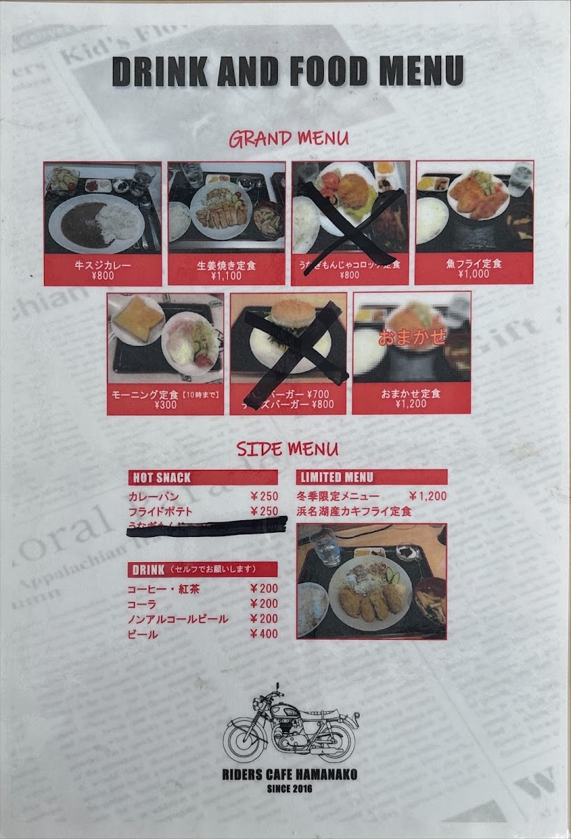 Whether you’re here for a hearty breakfast featuring freshly fried oysters from Lake Hamana or a peaceful afternoon coffee, the warm, welcoming atmosphere makes every visit special. Plus, with a bike-friendly vibe and a variety of custom motorcycles on display, it’s a perfect pit stop for riders and food lovers alike!